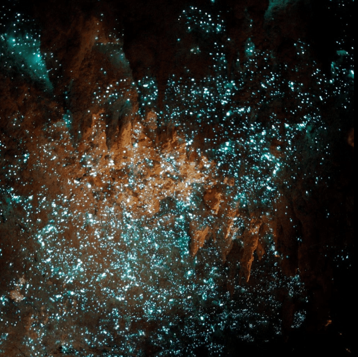 La luz la produce en realidad una larva de mosquito, que, al igual que las arañas, produce un hilo con el que atrapa a sus presas, que se quedan pegadas a su mucosa. Además producen un efecto bioluminiscente para atraer a otros insectos en la oscuridad.