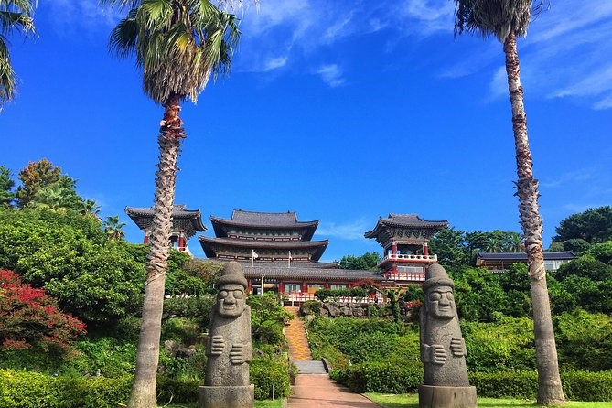 Jeju. Templos budistas y estatuas de piedra que se pueden encontrar por toda la isla. Los harubang («abuelos de piedra») son esculturas talladas en bloques de lava.