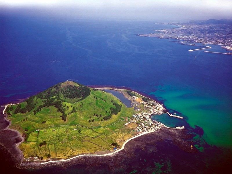 La Isla de Jeju, o Isla de los dioses, se encuentra al sur de Corea. Era conocida antiguamente en Occidente como isla de Quelpart. Entre su paisaje volcánico con cientos de cráteres, destacan Seongsan, el Pico del Sol Naciente que brotó del mar en una erupción volcánica de hace cien mil años, con un inmenso cráter cubierto de hierba y bordeado por las noventa y nueve rocas picudas que lo convierten en una espectacular corona. El volcán Geomun Oreun, con una red de tubos y cuevas volcánicas y Hallasan, la montaña más alta de Corea del Sur y Parque Nacional desde 1970, que con sus 1.950 metros de altitud domina el centro de la isla.
