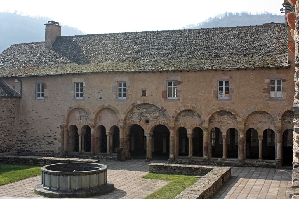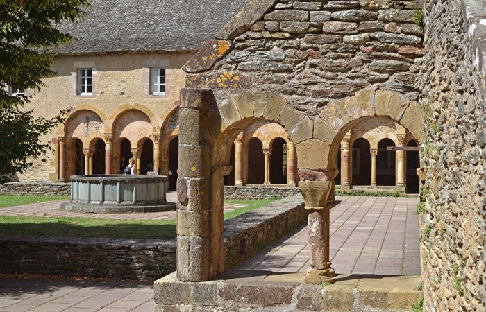 Claustro de la Abadía con una fuente en el centro que servía para suministrar agua a los peregrinos.