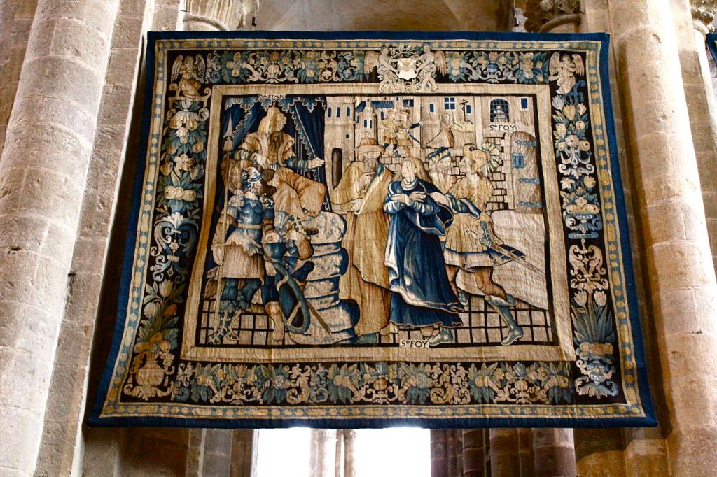 Tapices con la historia del martirio de Santa Fé. En éste, en el juicio delante de Decius.