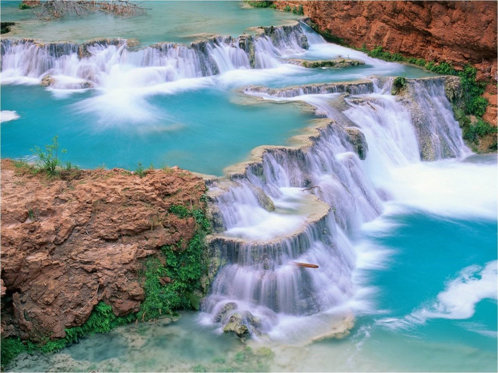 El riachuelo Havasu corre a través de un cañón. El color del agua se debe al carbonato cálcico.