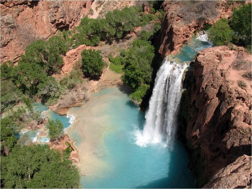 El color turquesa verdoso del agua se debe al elevado nivel de carbonato de calcio del agua. No menos curioso es el punto donde el río Havasu se encuentra con el río Colorado, dando lugar a una particular combinación de colores en el agua dependiendo de la estación del año. El río Havasu recorre parte del estado de Arizona en Estados Unidos. Es un paisaje desértico en el que resaltan tres cascadas principales: Havasu, Mooney y Navajo. Se visita desde el pueblo de Supai, una reserva indígena que es además uno de los pueblos más aislados de Estados Unidos. Como recomendación, llevar la menor carga posible y reservar la ruta con anticipación. Salir lo más pronto posible para poder descansar de vez en cuando.
