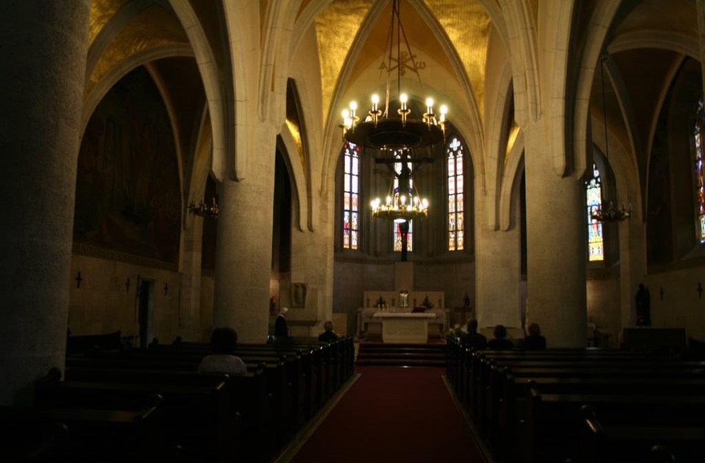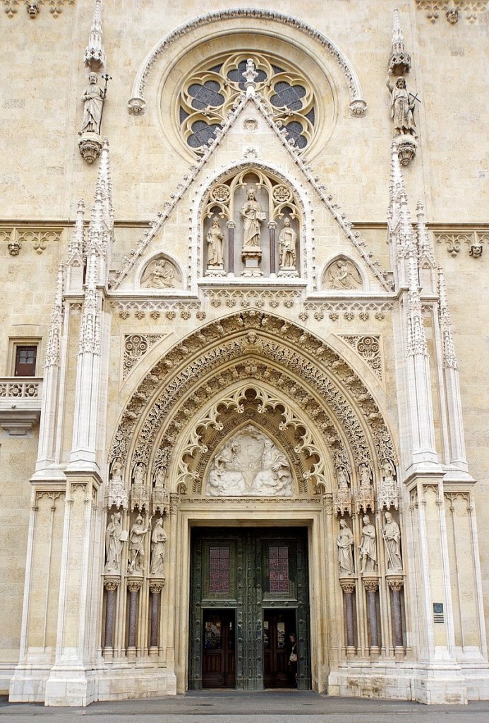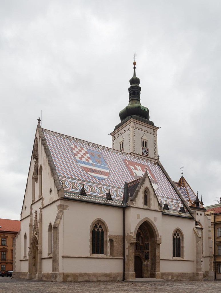 Interior de la Iglesia de San Marcos de Zagreb. Toda la iglesia está llena de esculturas del gran escultor croata Ivan Mestrovic.