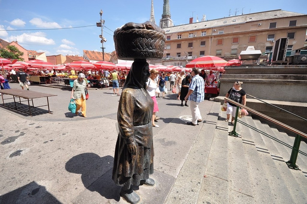 Plaza Dolac o Plaza del Mercado Verde. Estatua de campesina.