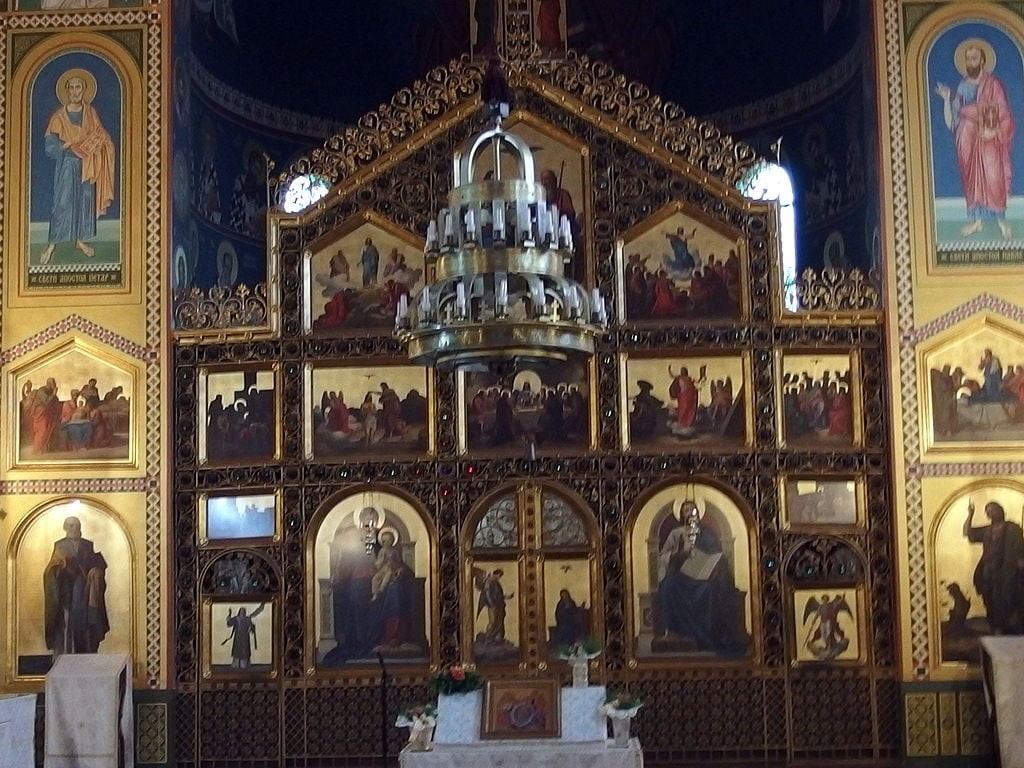 Interior de la Iglesia Ortodoxa serbia.
