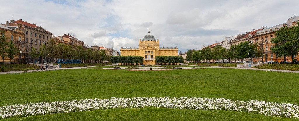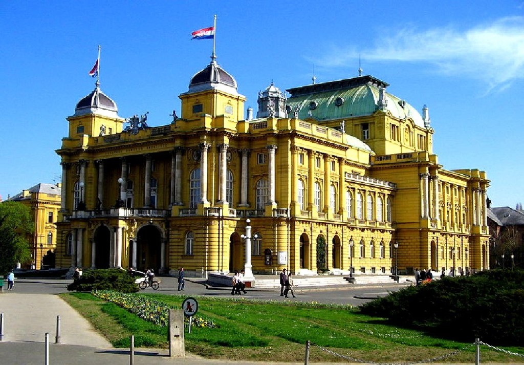 Teatro Nacional de Croacia. Es la cabecera occidental de la «Herradura verde». Dos arquitectos vieneses planearon su estructura, que se completó en 1895.