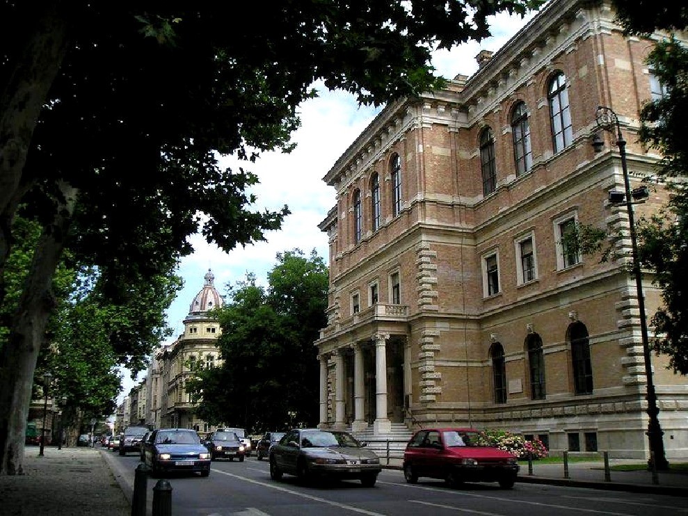 El Pabellón de Arte. Fue un edificio prefabricado en hierro para la exposición de 1896 en Budapest. Por este lado tenía andamios para su restauración.
