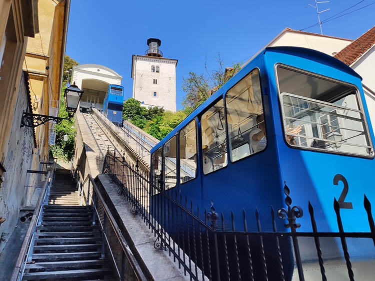 Las vistas compensan.Desde aquí se divisa la Plaza de Ban Jelačić. Este espacio central entre la ciudad alta y la baja, homenajea con su nombre a Josip Jelačić, un líder militar de Croacia y comandante de la Orden de María Teresa, considerado un héroe nacional croata. La plaza central fue construida en la Segunda Guerra Mundial, y en 1991, antes de la independencia de Croacia, fue denominada oficialmente como «Plaza de la República». Es el centro comercial y financiero. A la izquierda se ve la Plaza del Mercado Verde.