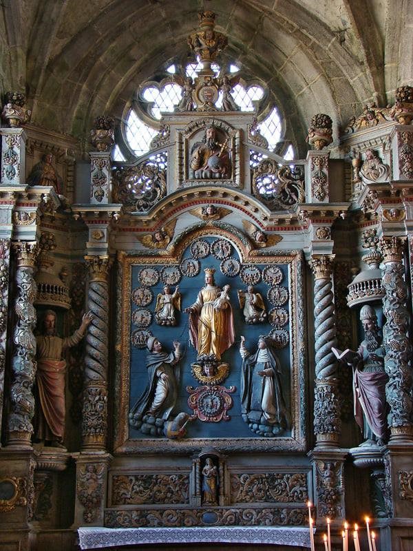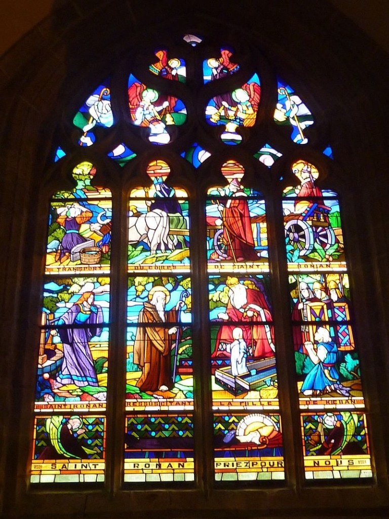 Iglesia de San Ronan. La tumba del santo es muy visitada por mujeres y parejas que desean tener hijos. Se sabe que Ana de Bretaña, reina de Francia, visitó la iglesia en 1505 para rogar al santo que le concediera un heredero para su esposo, el rey Luis XII.