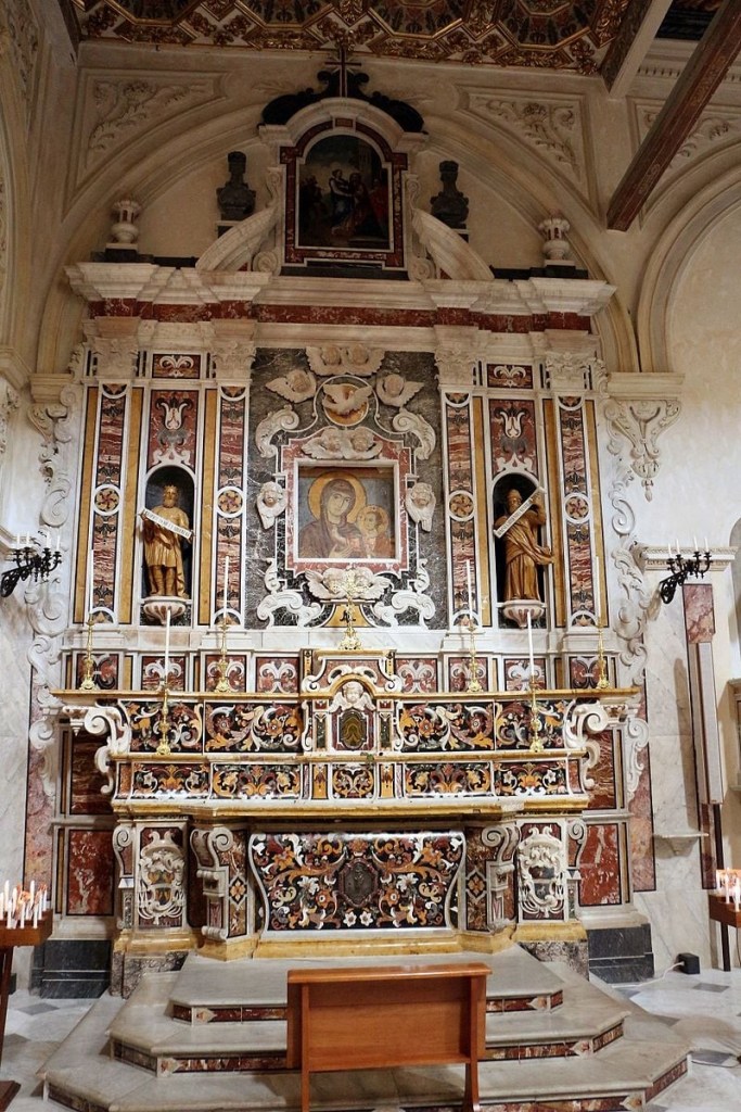 Altar del siglo XVIII. En el centro se conserva una imagen bizantina de María de la Bruna, a la que está dedicada la Catedral.