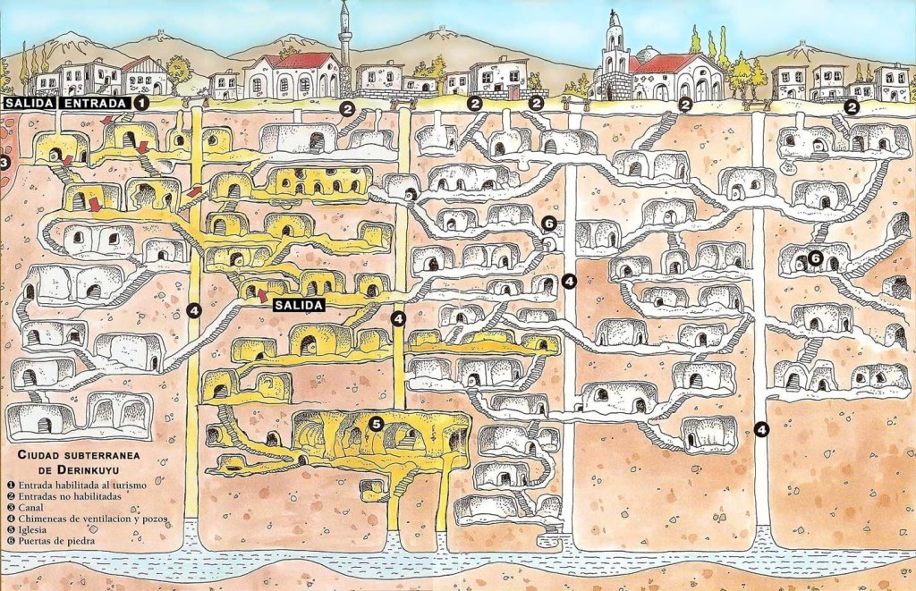 Ciudad subterránea de Nevsehir, Descubierta en Capadocia a principios del siglo XXI y que parece ser que es más grande incluso que Derinkuyu. Se está acondicionando y pronto será abierta al público.