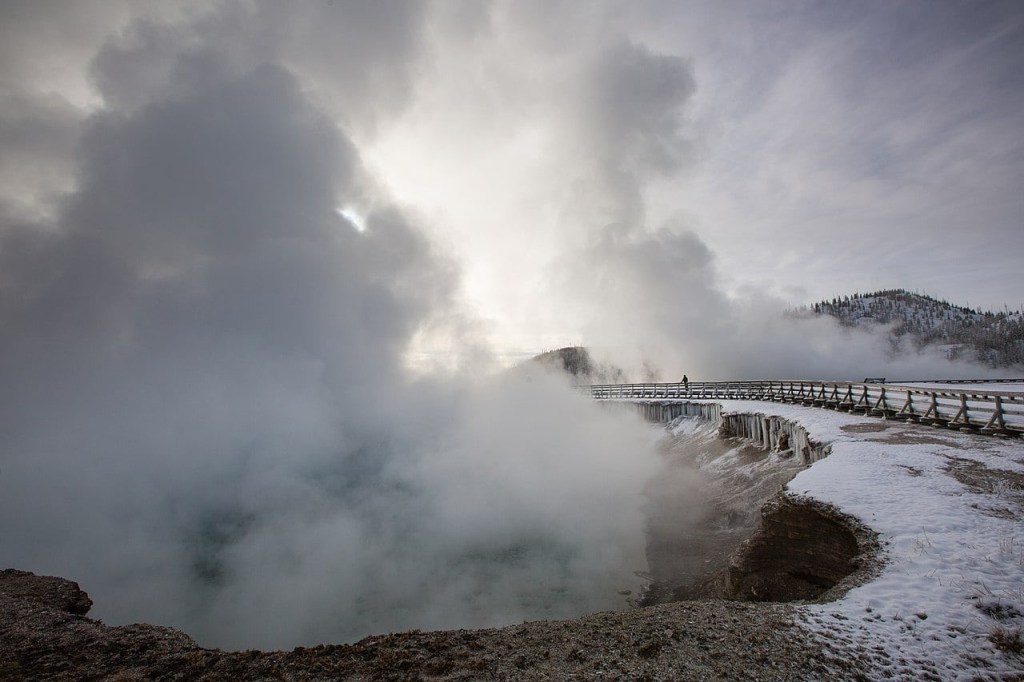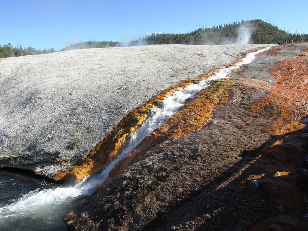 Salida del cráter del Excelsior Geyser al Firehole River Midway.