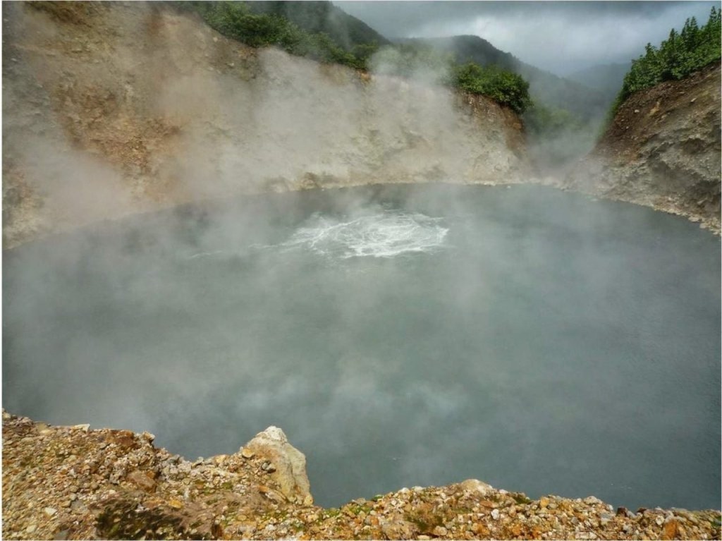 El Boiling Lake , en el Parque Nacional Morne Trois Pitons cerca de Roseau, en la Isla de Dominica, es una fumarola sumergida, con agua burbujeante de color gris azulado y que está cubierto por una nube de vapor. El lago mide, con fluctuaciones, alrededor de 63 m a 76 m. , y una profundidad de 59 m y la temperatura del agua alcanza los 82 y 91,5 ºC. La única manera de llegar es andando.