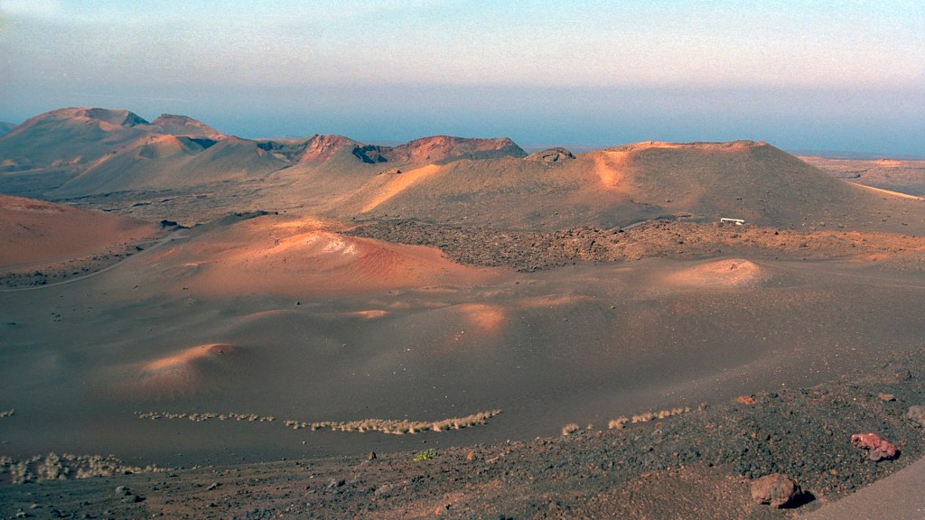 El Parque Nacional de Timanfaya, en Lanzarote. Canarias, está formado por más de 25 volcanes, y presenta aún actividad . El 1 de septiembre de 1730, nueve pueblos quedaron enterrados y el aspecto de la isla cambió por completo. La última erupción tuvo lugar en 1824, dando lugar a formaciones de lava rugosas y con abruptas costas. La única vegetación son líquenes.