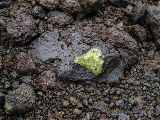 Olivina. Mineral que se forma al cristalizar el magma. Tiene un precioso color verde.