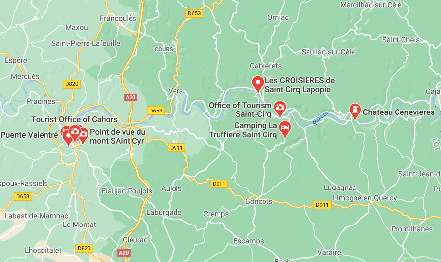 Entre Cahors y Saint-Cirq Lapopie, a lo largo del río Lot, existen una serie de castillos, que se construyeron en el siglo XI y XII y que están integrados en las rocas, dentro de los acantilados y desfiladeros del valle del río. Presentan una arquitectura única que sirvió como refugio, hogar y como defensa a la población francesa de los ataques de los ingleses durante la Guerra de los Cien Años. Se los conoce como Castillos de los Ingleses o Chateaux des Anglais. El primero, el Château de Laroque-des-Arcs, fue construido bajo una roca suspendida colgante. Un poco más allá se puede ver el Château de Vers, en los acantilados del oeste. Un poco más lejos se llega al Château de Saint-Gery, seguido del famoso Défilé des Anglais en Bouzies. Normalmente no se puede entrar en estas fortificaciones. La última se ve desde un puente colgante de Béars sobre el río.