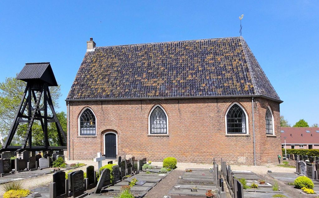 Iglesia de Giethoorn. Tienen el campanario fuera de la iglesia, en el cementerio.