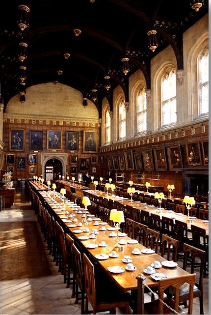 The Great Hall. El comedor del Colegio fue reproducido en los estudios para grabar el Comedor de Hogwarts en la película de Harry Potter.