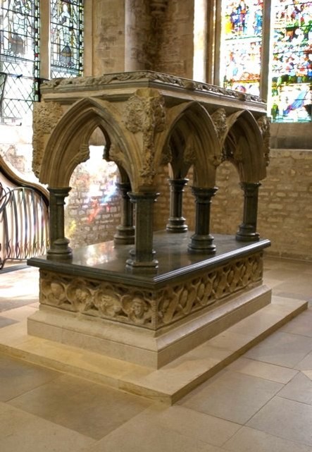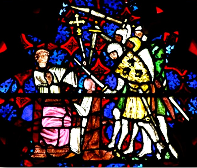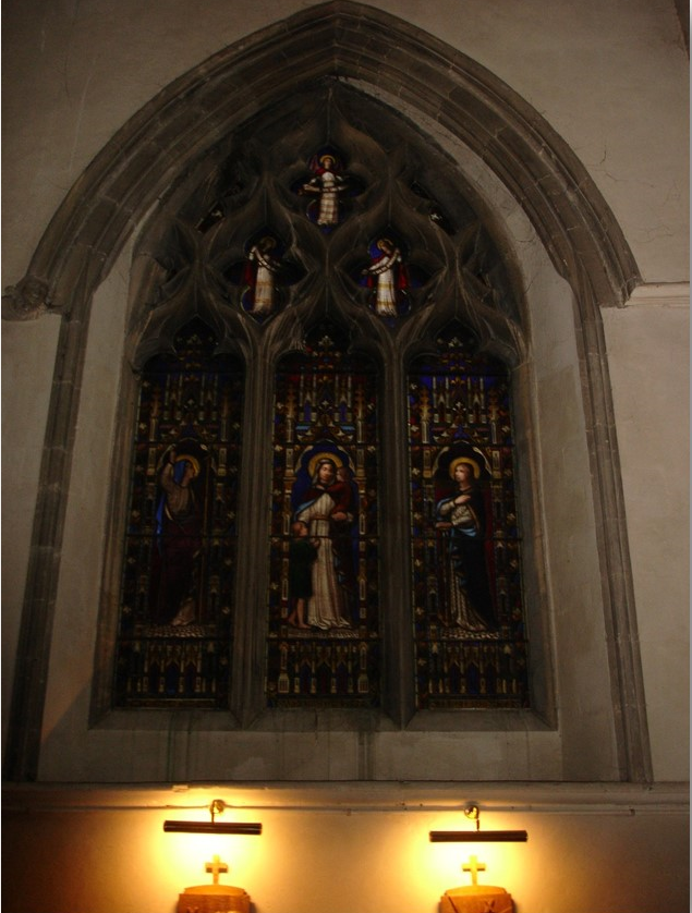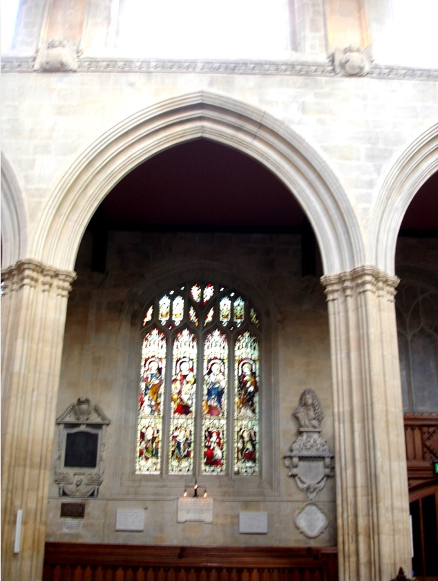 Vidrieras del siglo XIV. La primera representa a Thomas Becket, arzobispo de Canterbury, martirizado por los soldados de Enrique II y conservada a pesar de la orden de Enrique VIII de destruir todas sus imágenes. A la derecha el santuario de las reliquias de St. Frides, del siglo XIII.