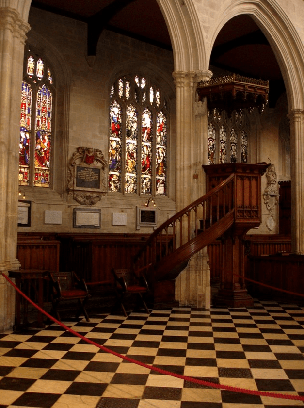Púlpito y vidrieras de Saint Mary Virgin Church.