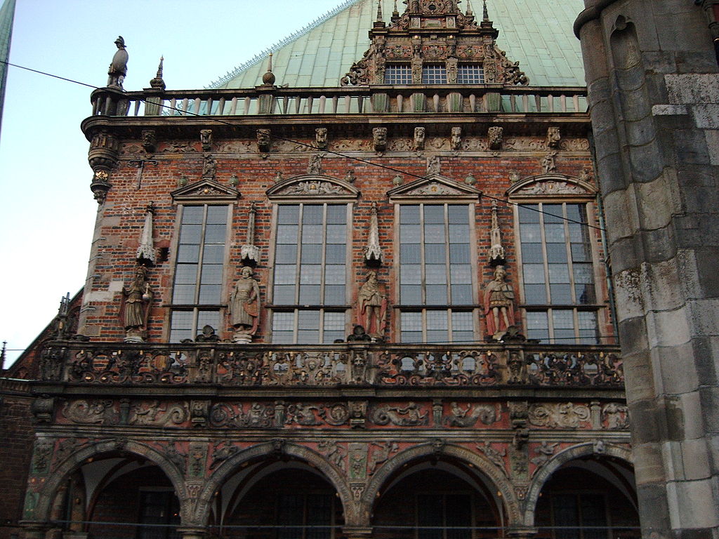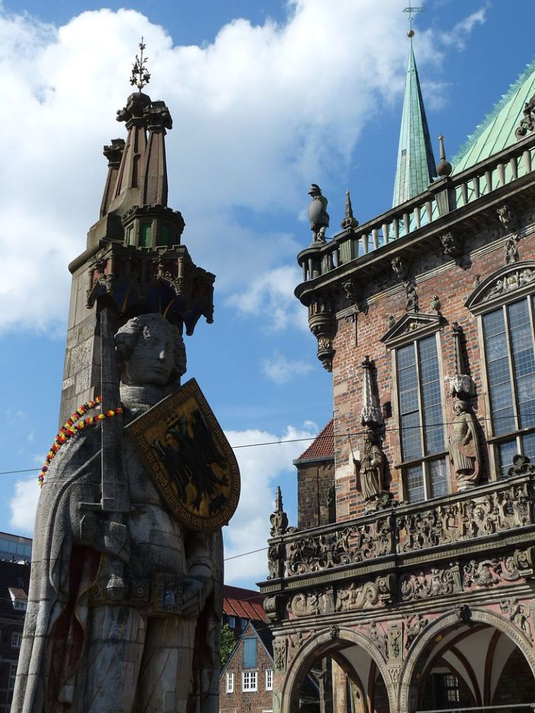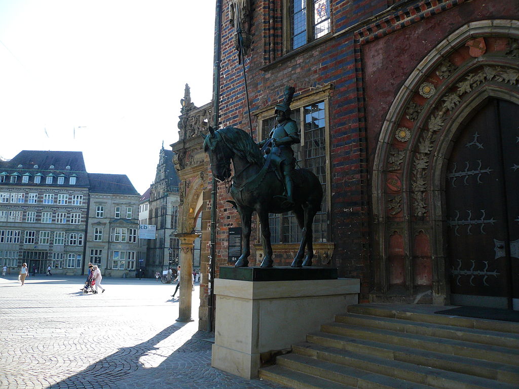 Delante del Ayuntamiento, en el centro de Marketplatz, estatua de Rolando de Bremen, erigida en 1404, símbolo de la independencia, ya que consiguió la autonomía acabando con el dominio del obispo de Verden.