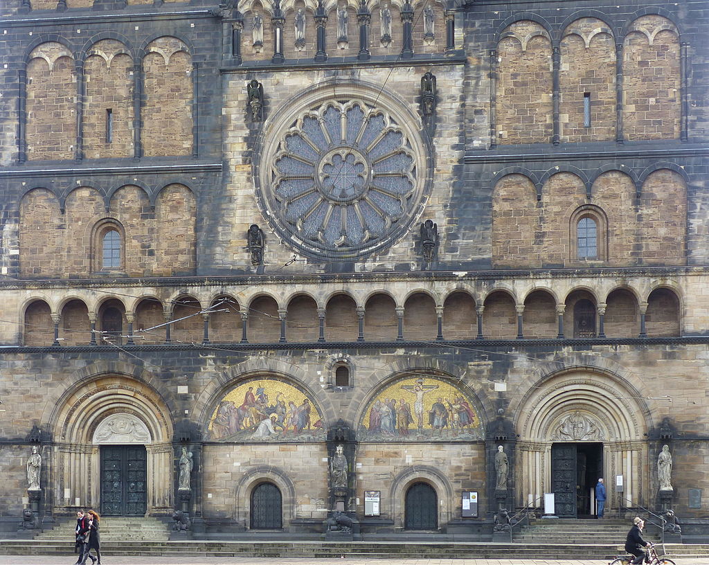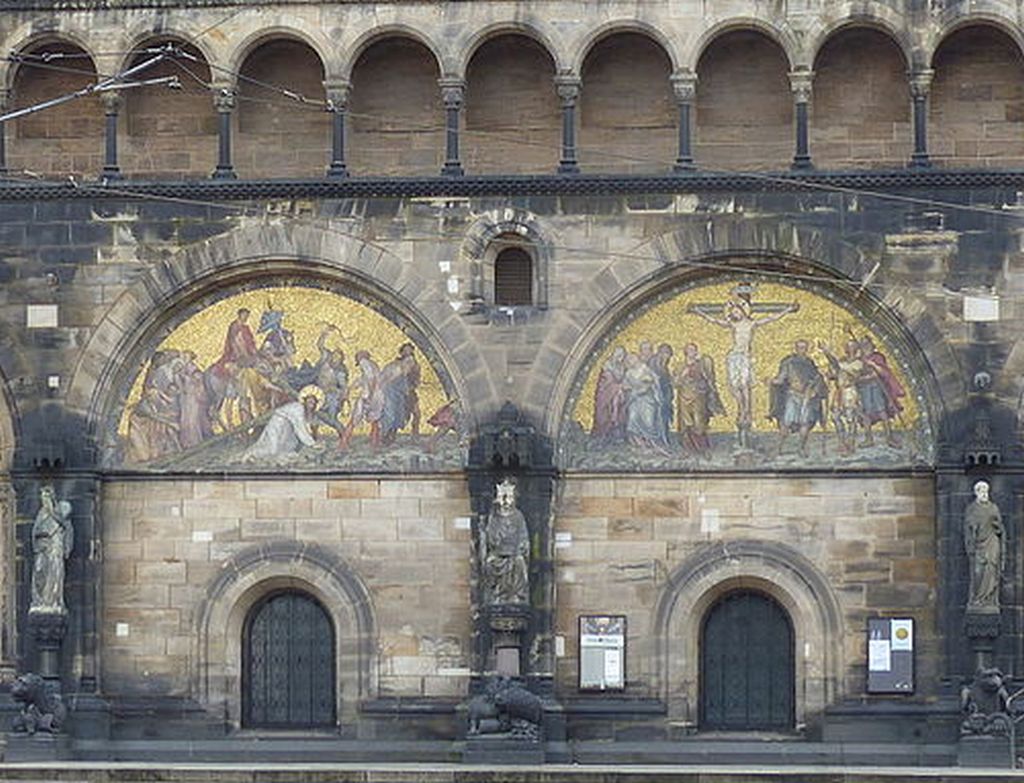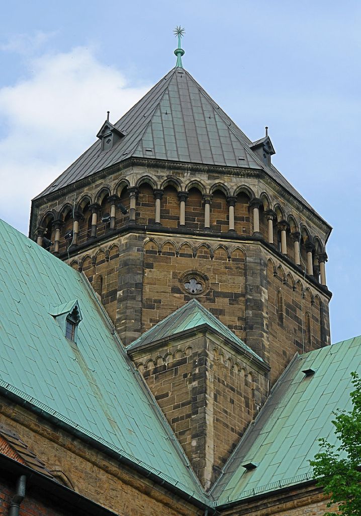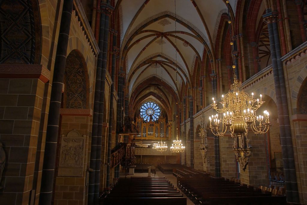 Catedral de San Pedro. Se tienen noticias de una pequeña iglesia de madera levantada en el siglo VIII y que fue destruida por los sajones. Después se levantó una iglesia en piedra arenisca con una nave central y dos laterales con un coro en cada extremo de la nave, manteniendo una forma típica de iglesia carolingia. Pero fue destruida por un incendio. Fue reconstruida con planta basilical en estilo románico. De esta época son las criptas del siglo XI, que quedan hoy en día.