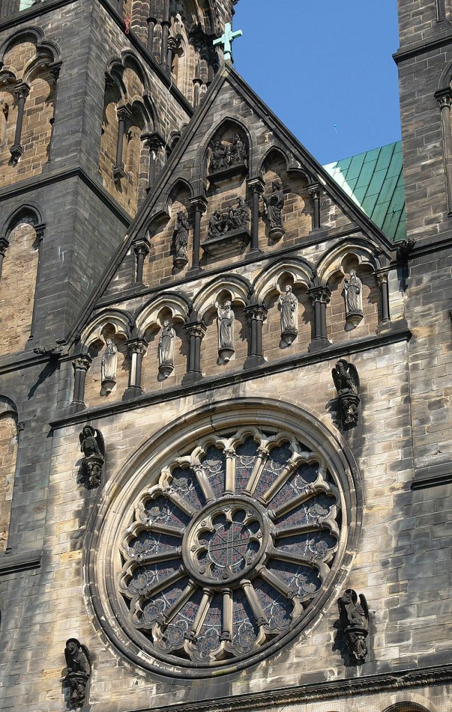 Rosetón entre las torres. Su objetivo era iluminar la nave central.