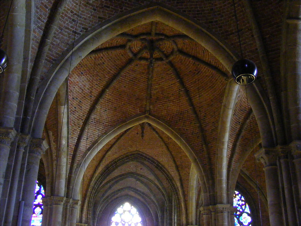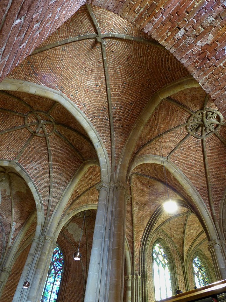 La iglesia tiene estilo gótico, con bóvedas de ladrillo, sujetadas por arcos ojivales y nervios de piedra.