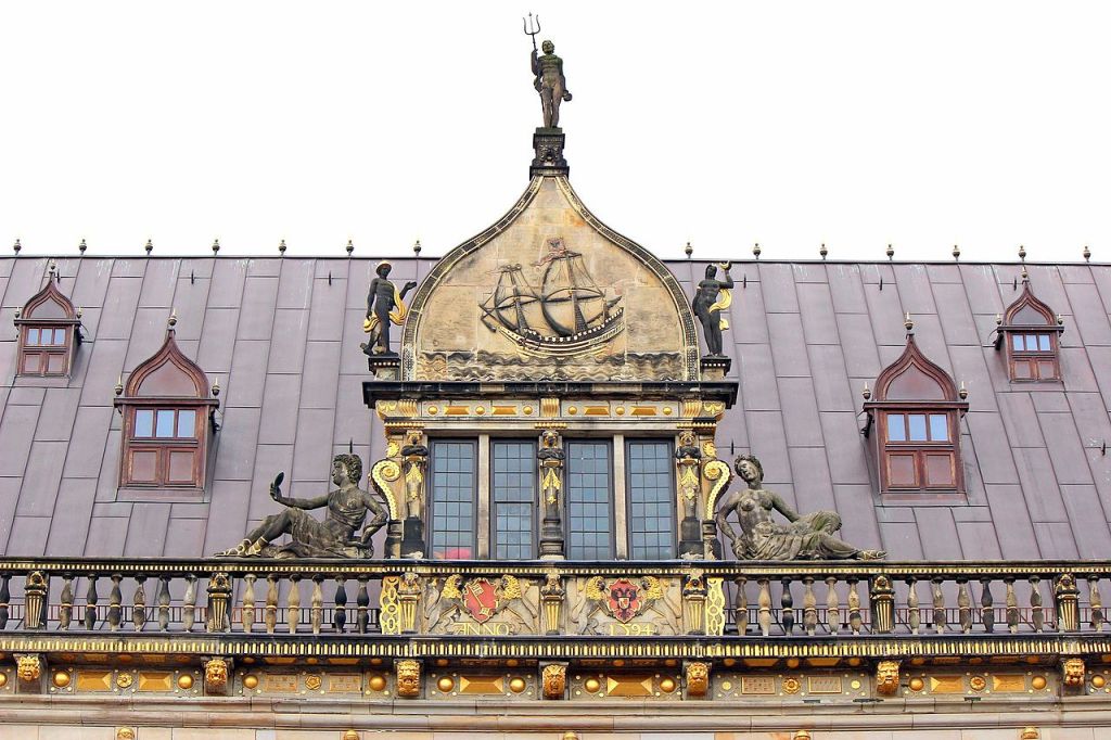 Detalle de la parte alta de la fachada frontal de la Schütting.