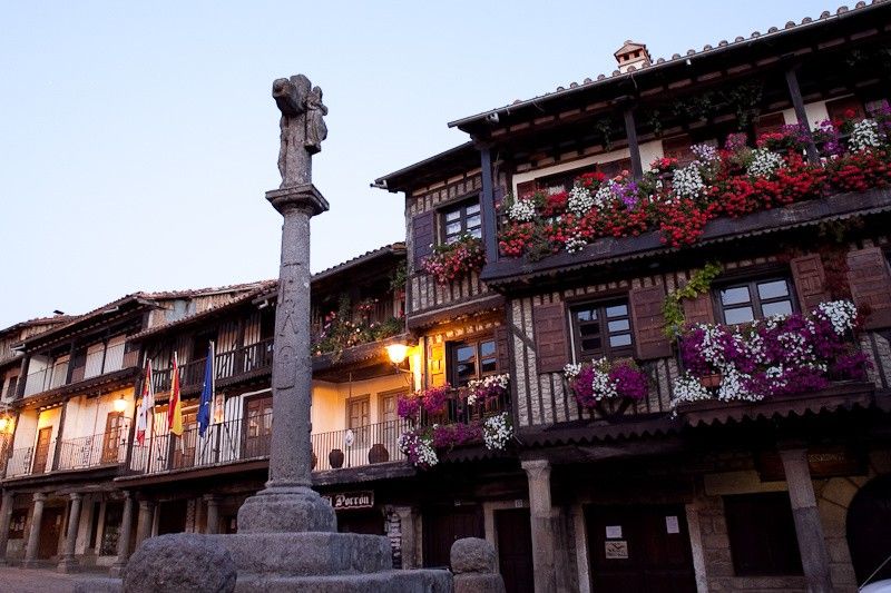 Situada en plena Sierra de Francia, en el sur de la provincia de Salamanca, La Alberca no es muy grande, pero toda la población y en especial su Plaza, es de las de mayor encanto de toda España, sobre todo cuando, después de primavera sus habitantes decoran los balcones con flores. Desde la época medieval, la estructura urbana de La Alberca une las culturas cristiana, musulmana y judía , con sus soportales y sus fachadas dispuestas en dos series de balcones con columnas de granito que sostienen las edificaciones. En el centro de la plaza podemos ver un crucero de piedra, que hace más de 80 años, se trasladó a la plaza desde las afueras del pueblo. En el Ayuntamiento, se ve la placa que conmemora la visita de Alfonso XIII en 1922.