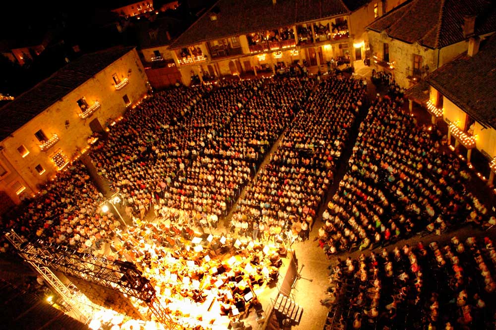 Concierto en la Plaza Mayor de Pedraza en la Noche de las Velas, visto desde la Torre de San Juan Bautista.
