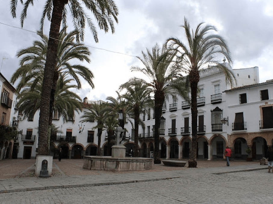 En la provincia de Badajoz. Data de mediados del siglo XVI, aunque hay soportales del siglo XV. Fue construida para ampliar la Plaza Chica, con la que se comunica por el Arquillo del Pan, que se quedaba pequeña para el comercio. Tiene forma rectangular y excepto la cara norte, está toda porticada.