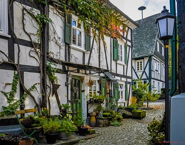 Tiene un especial encanto medieval, debido a que el núcleo consta de 86 casas con entramado de madera, a los que se añade la blancura de la cal de los muros y el gris negruzco de los tejados de pizarra, todo ello enmarcado en un pintoresco paisaje de montaña, verde, que parece sacado de un cuento de hadas.