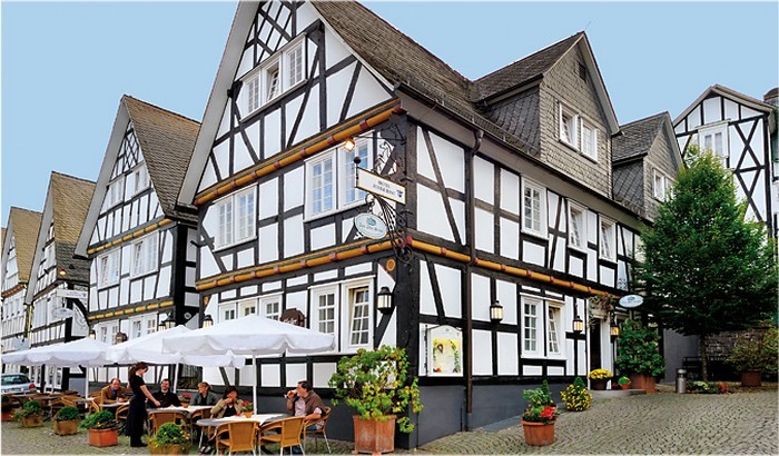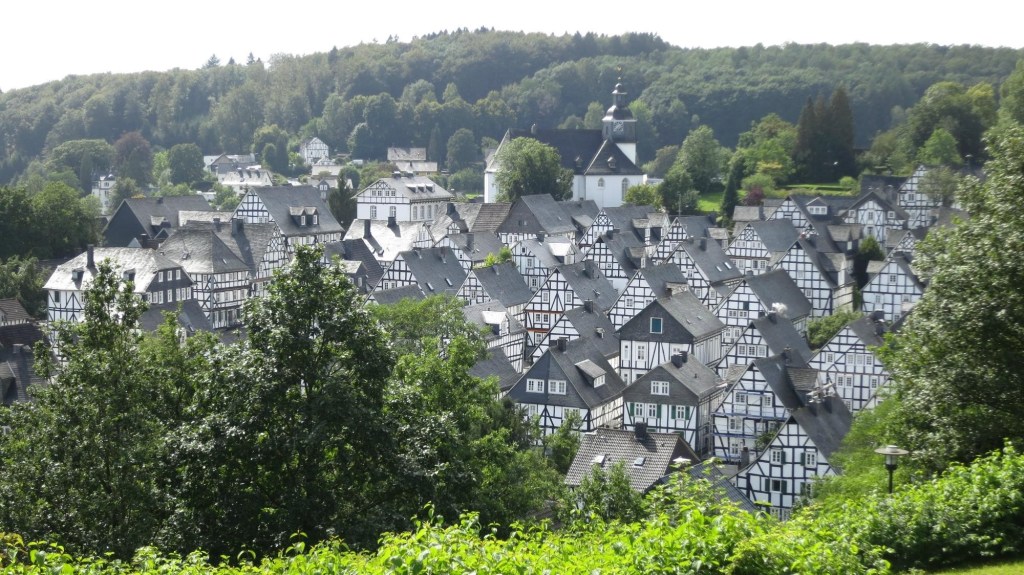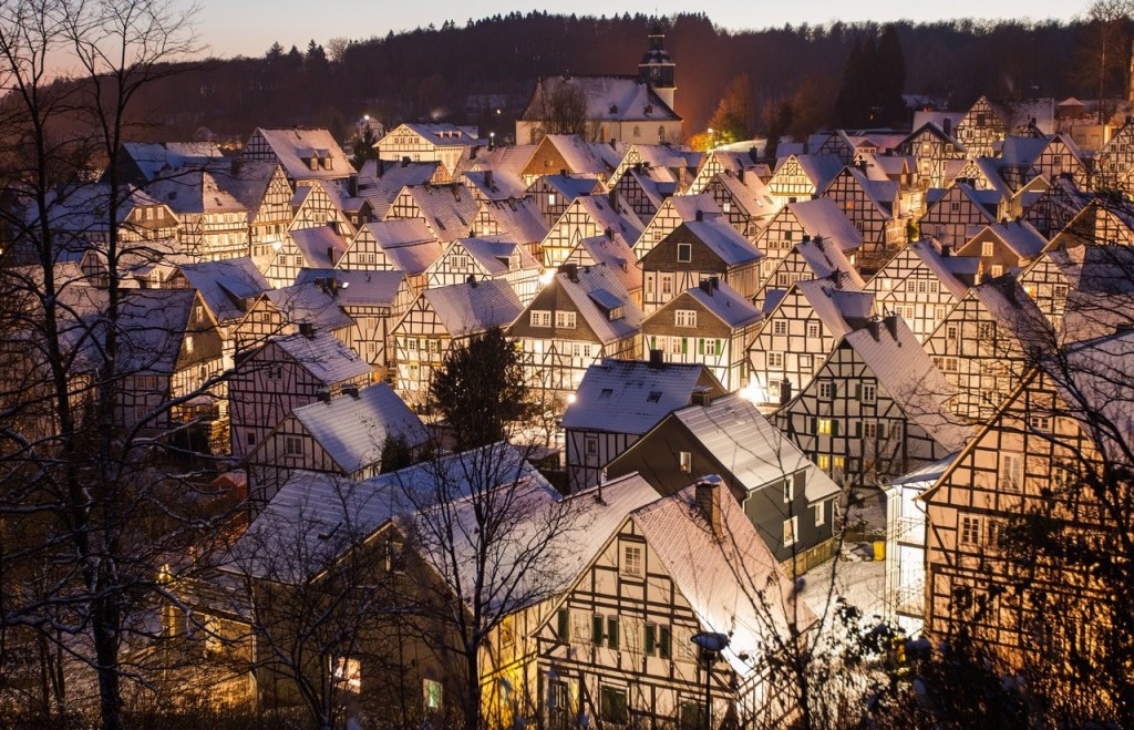 Una imagen maravillosa de Freudenberg iluminado. Aunque no lo parezca, las casas están situadas formando calles paralelas y perpendiculares.
