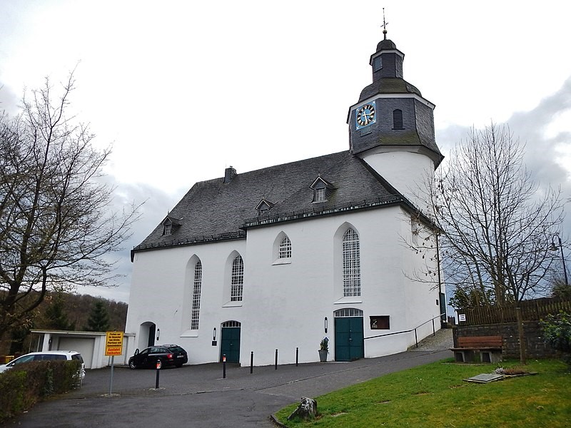 Iglesia evangélica. Edificio protegido en Oberholzklau, perteneciente a Freudenberg. Es una edificación del siglo XIII, de estilo Románico de transición al Gótico.