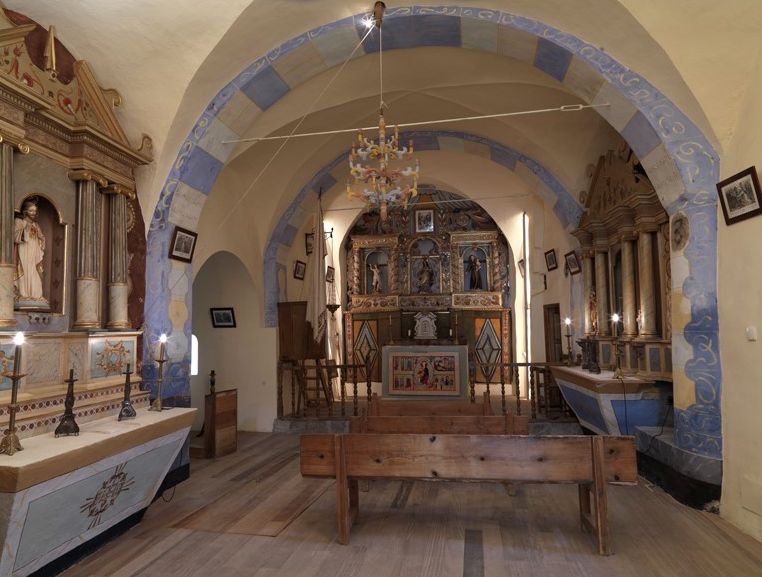 Santa María de Cardet es la iglesia más pequeña de todas las del valle. El retablo barroco que oculta el espacio del ábside, hace que parezca aún más pequeña.
