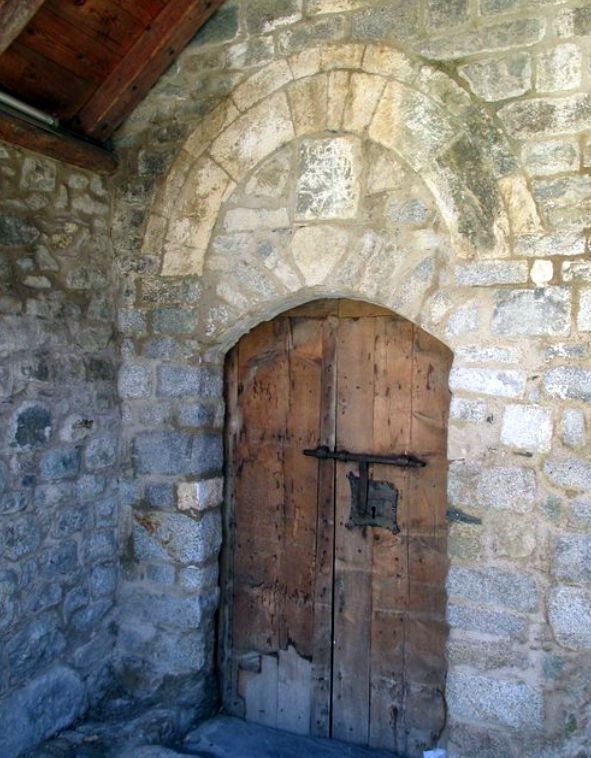 En el muro sur tiene adosado un porche medieval, que protege una puerta de entrada.