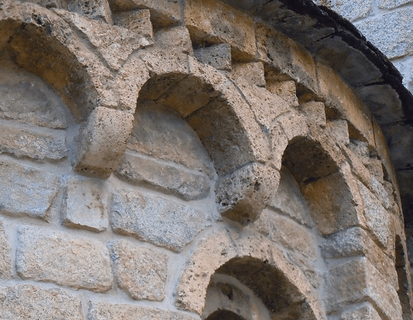 Detalle de los arcos lombardos ciegos del ábside de San Clemente.