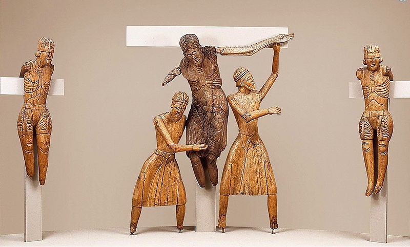 Virgen María y San Juan, conservadas en el Museo de Arte de Cataluña. Estas esculturas demuestran un momento de esplendor de la imaginería en Cataluña en el siglo XII, llegando hasta la época del gótico.