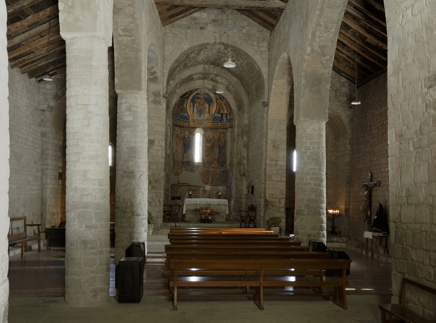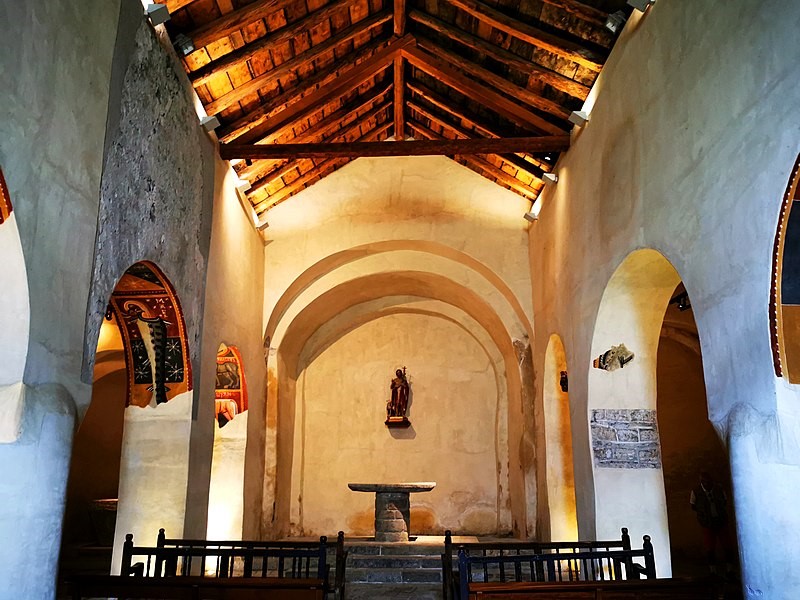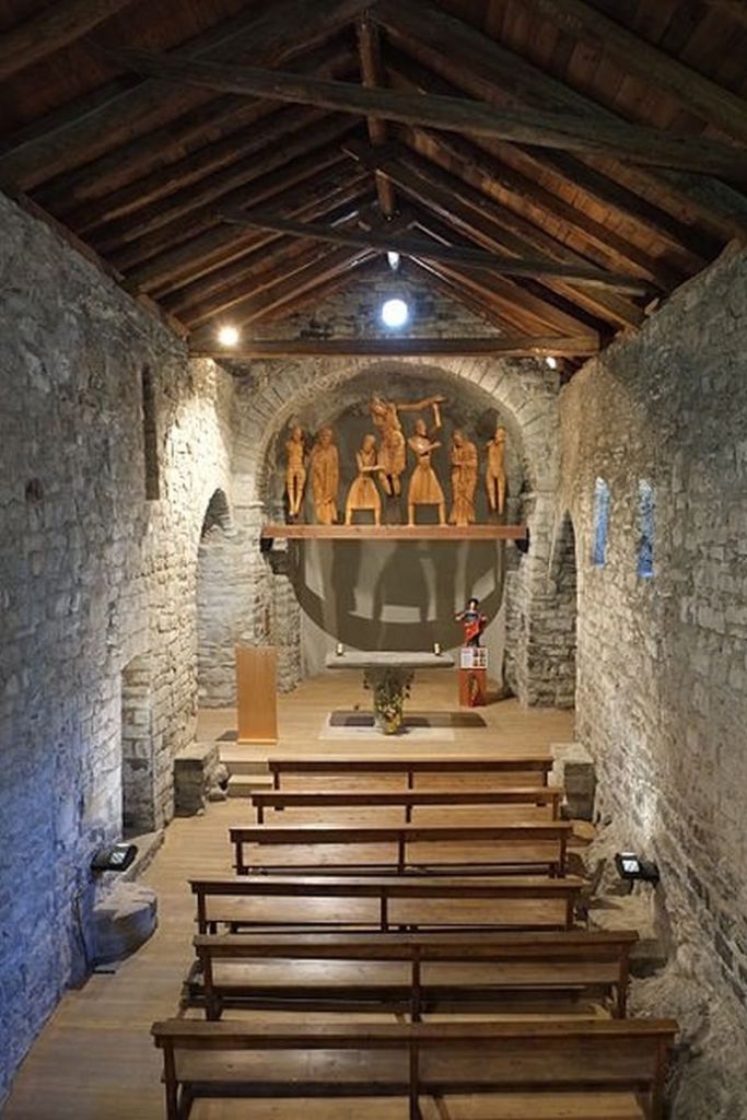 Al estar construida en una pronunciada pendiente, tiene un ábside espectacular de dos plantas, aprovechando el desnivel del terreno, para construir una pequeña cripta en el interior, la única de todo el valle.