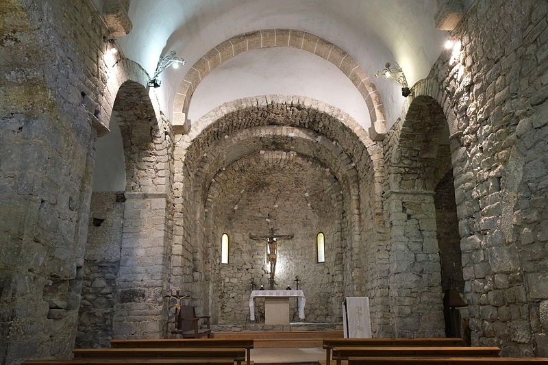 Es obra finales del XI y el primer tercio del siglo XII. Consta de una sola nave muy alargada, que en origen se cubrió con bóveda de cañón. La nave terminaba en un ábside y a ambos lados, como remate de lo que se puede considerar el crucero, se inscribían otros dos absidiolos, dando la forma de trébol a la cabecera; es lo que se llama cabecera triconque.