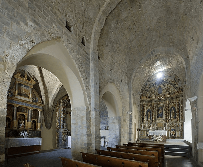 Interior de San Félix. Se aprecian las tres naves, con bóvedas de cañón y arcos fajones de medio punto.