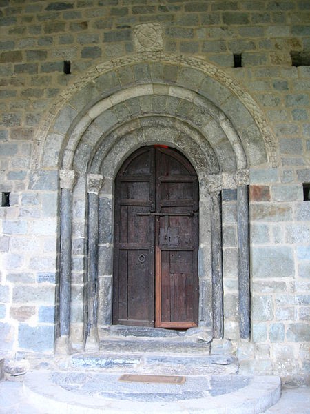 Exterior de la puerta principal de la iglesia de San Juan de Bohí.
