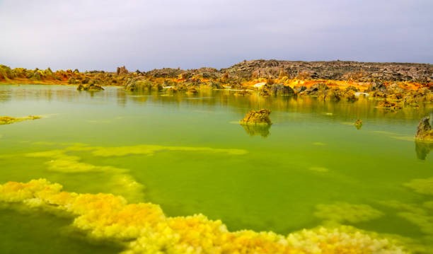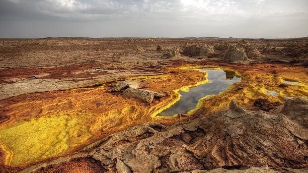 Debido a los vapores tóxicos que emanan del cráter, no hay vida en los charcos salados e hiperácidos de Dallol, a excepción de unos cuantos microbios.