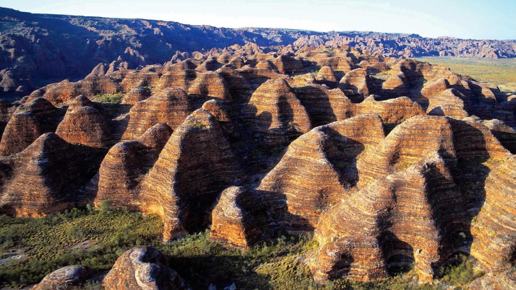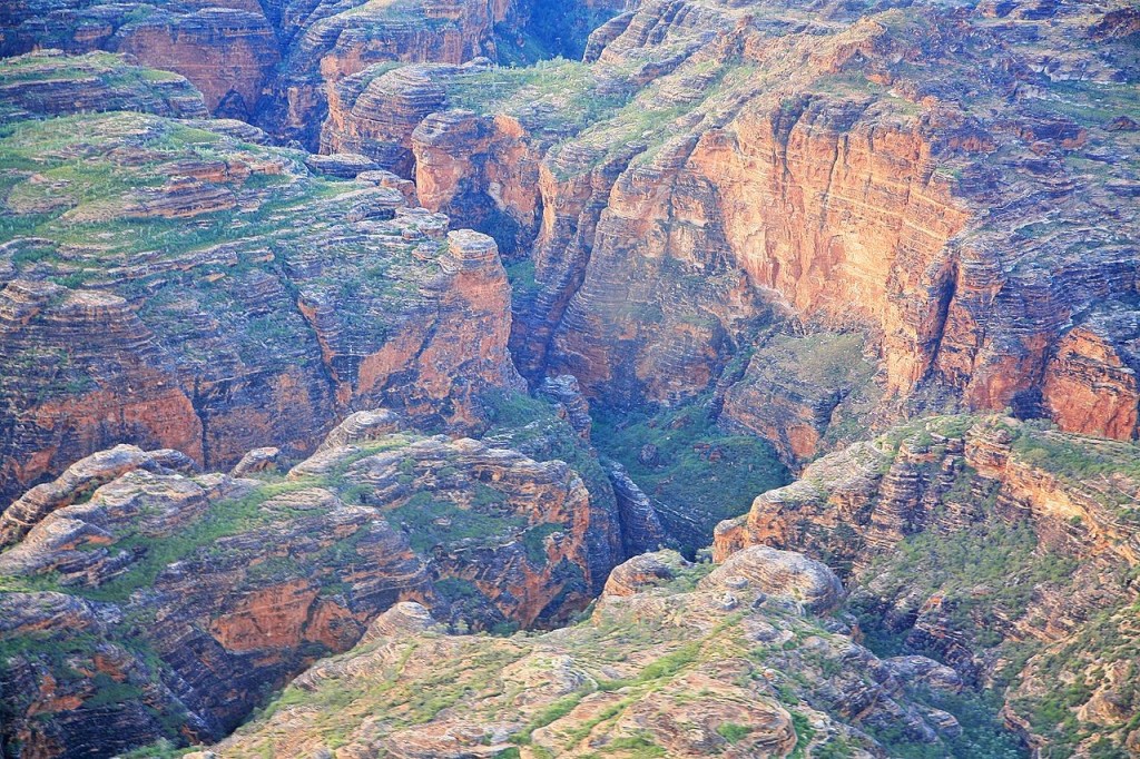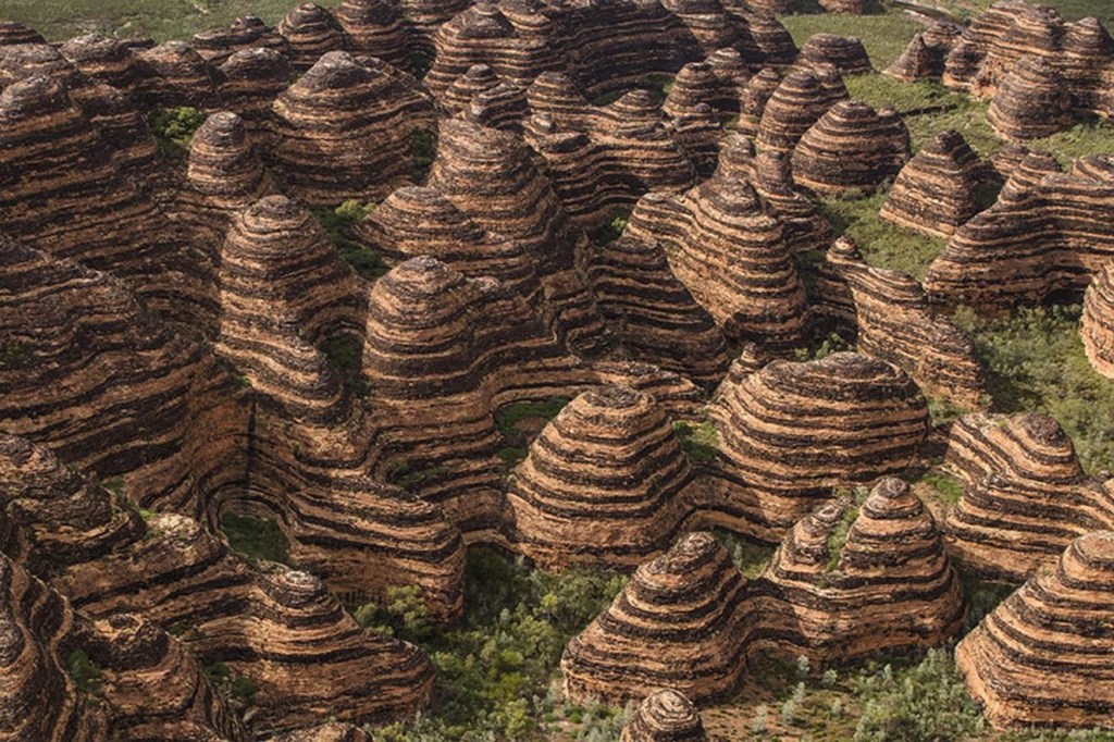 Las erosionadas mesetas de Purnululu vistas desde el aire. Se puede visitar solo en la estación seca, de mayo a diciembre.
