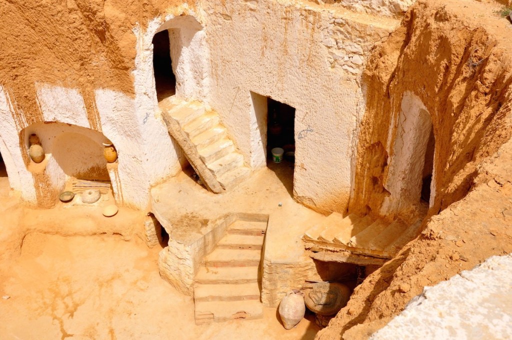 Este subterráneo fue elegido por George Lucas como hogar de Luke Skywalker en el planeta Tatooine, en la Guerra de las Galaxias /Star Wars. Y todavía tienen incorporado el decorado utilizado para la película.