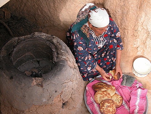 Mujer preparando la comida. Algunas familias ofrecen al visitante visitas guiadas y muestran cómo se molía el grano, e incluso, obsequian con un té con menta, aceptando la generosidad de los turistas.
