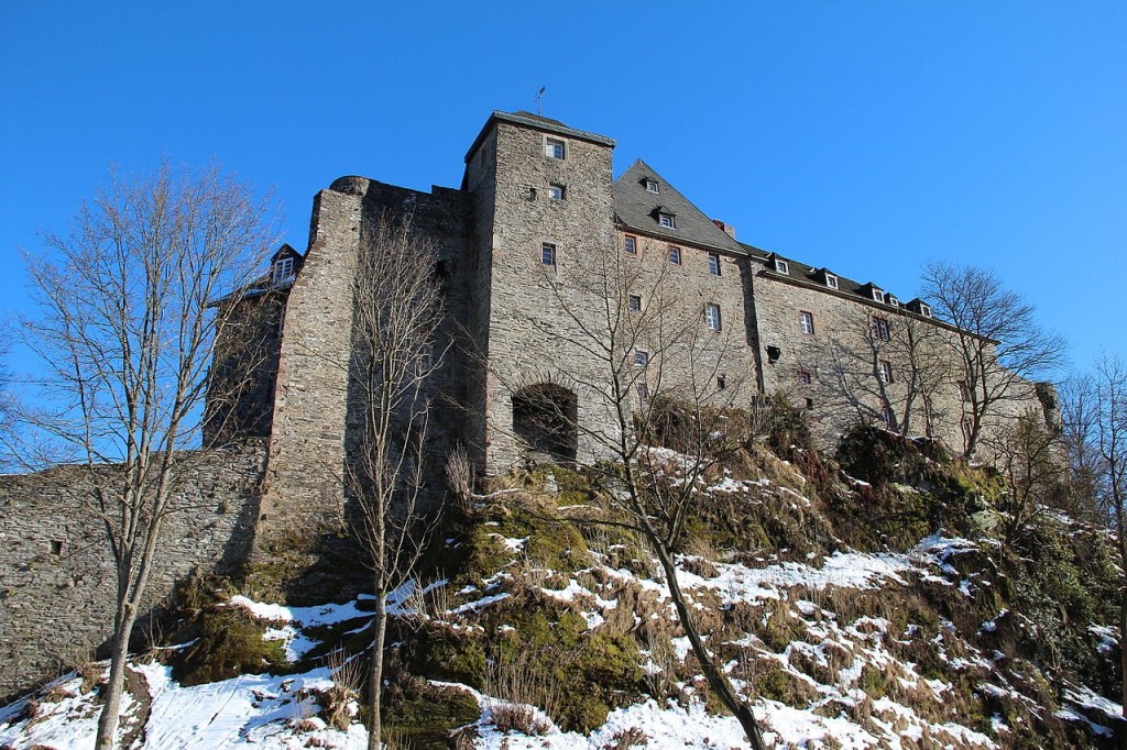 Vista del castillo desde la ciudad, que quedó prácticamente intacta. En el Burg Monschau. se celebra anualmente un festival de música al aire libre.