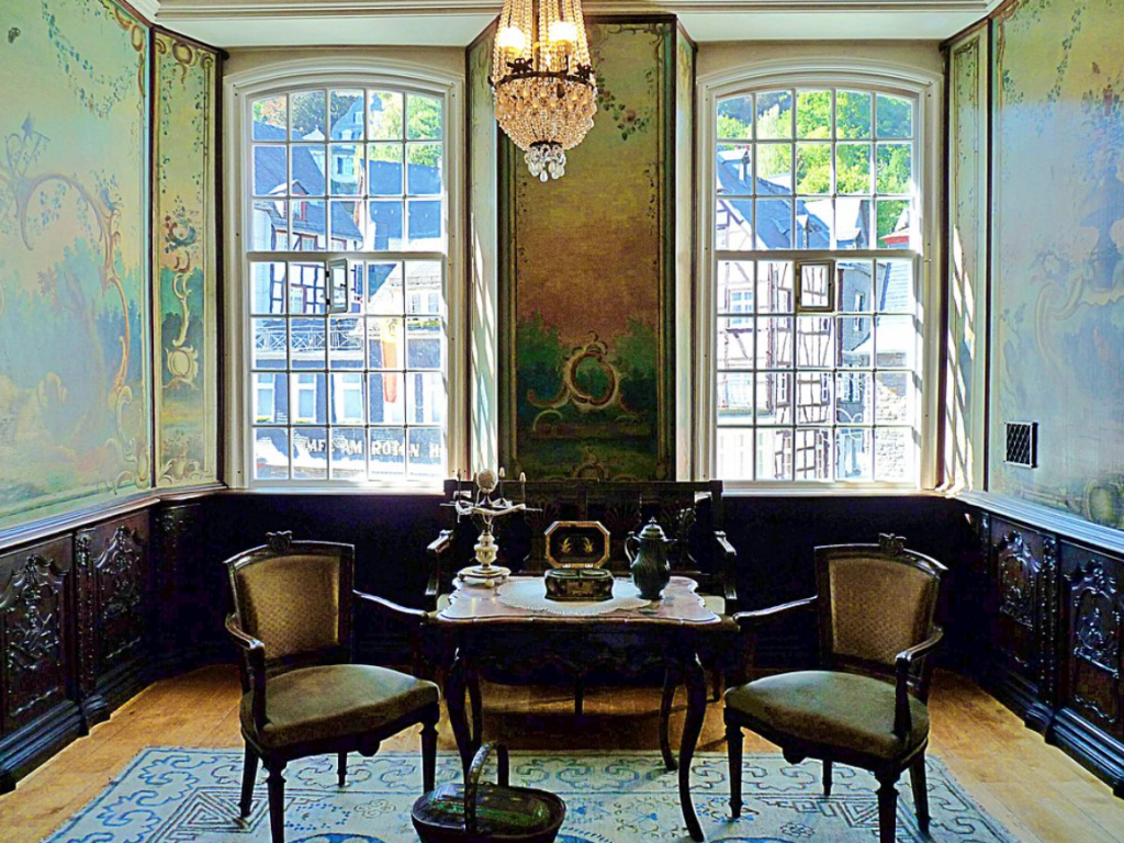 Despacho. A través de los ventanales, se ven las casas del otro lado del río. Refleja el gusto burgués de los siglos XVIII y XIX.